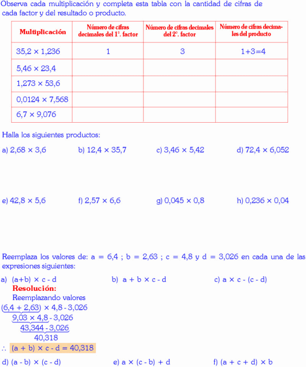 MULTIPLICAR DECIMAL POR DECIMAL EJEMPLOS RESUELTOS
