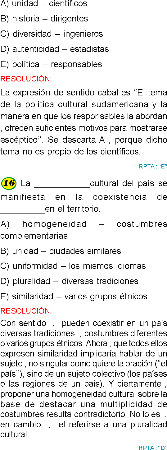 Las oraciones incompletas son preguntas que están formadas por textos breves a los cuales se le han suprimido de manera deliberada uno o más de sus elementos, por lo que es necesario restablecer el sentido de la expresión a través de la selección de la palabra o palabras más adecuadas de una relación de 5 opciones.