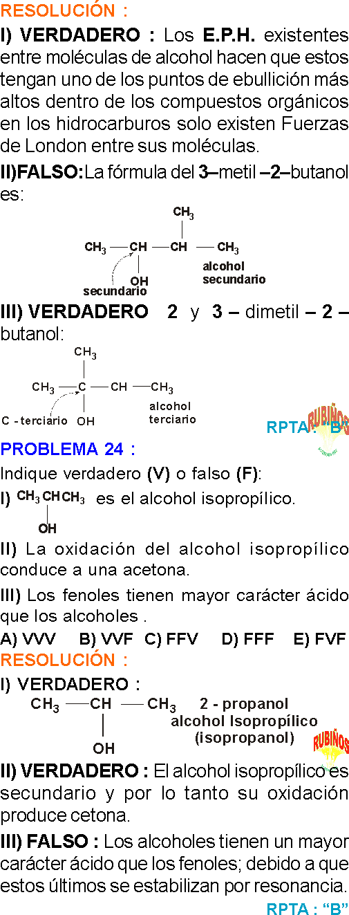 III) Los fenoles tienen mayor solubilidad en agua que los alcoholes .
